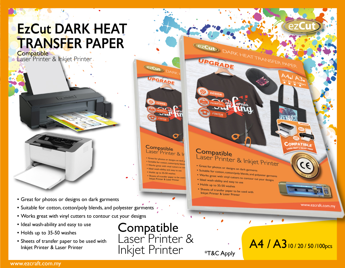 Heat Press Printing Material, Compatible Laser Printer & Inkjet Printer